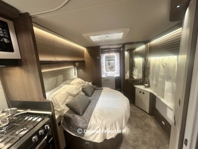One of the most luxurious single axle caravans on the market. This 4 berth model offers a full rear washroom with shower unit, followed by a transverse island bed. The lounge boasts an L shaped sofa that becomes a second bedroom in the evening. Key Features: NEW 5G ready Wifi
