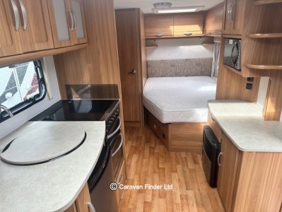 Family friendly layout that is an easy size to tow but also offers enough space for 4 people to relax in the day and night. To the rear is a space saving wetroom style washroom and french double bed. In the middle is your kitchen area, followed by lounge seating that converts to a double bed.