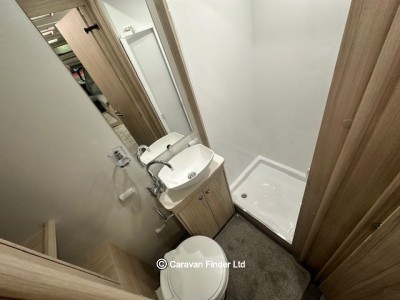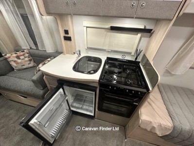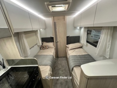 The Whirlwind Evolve GT is a brand new range for Elddis for 2026. The 185 offers a full rear washroom followed by fixed single beds, then a kitchen with oven, hob, grill and fridge freezer. To the front is lounge seating and swivel chairs, and this area easily becomes a second bedroom.