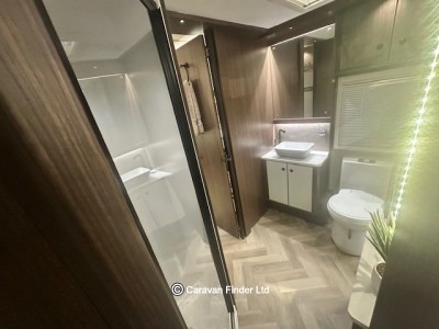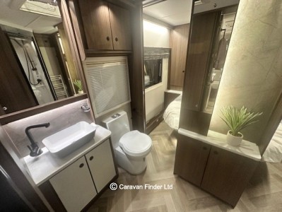 Plenty of space to relax in this Laser Xtra 845. It offers an end washroom with shower unit, plus island transverse double bed and front lounge with L shaped seating that converts to a further double bed. Contemporary design and plenty of room in the 8ft wide Coachman Laser Xtra range. Key Features