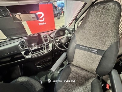 Elddis Autoquest Apex 150 is an Automatic motorhome with a rear island bed followed by a washroom and kitche. The kitchen is well serviced kitchen with hob, oven, grill, fridge-freezer and omnivent. To the front is lounge seating that becomes a second double bed.