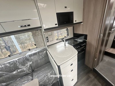 Luxury caravan with flexible layout. This model is perfect for up to 4 to enjoy. To the front is dining seating that easily converts to a double bed. This is followed by kitchen with all mod cons - microwave, grill, hob, oven, fridge with freezer compartment. Onwards you'll find your washroom with shower cubicle, casette toilet, sink and vanity mirror. To the rear are twin single beds that can be extended through the centre.
