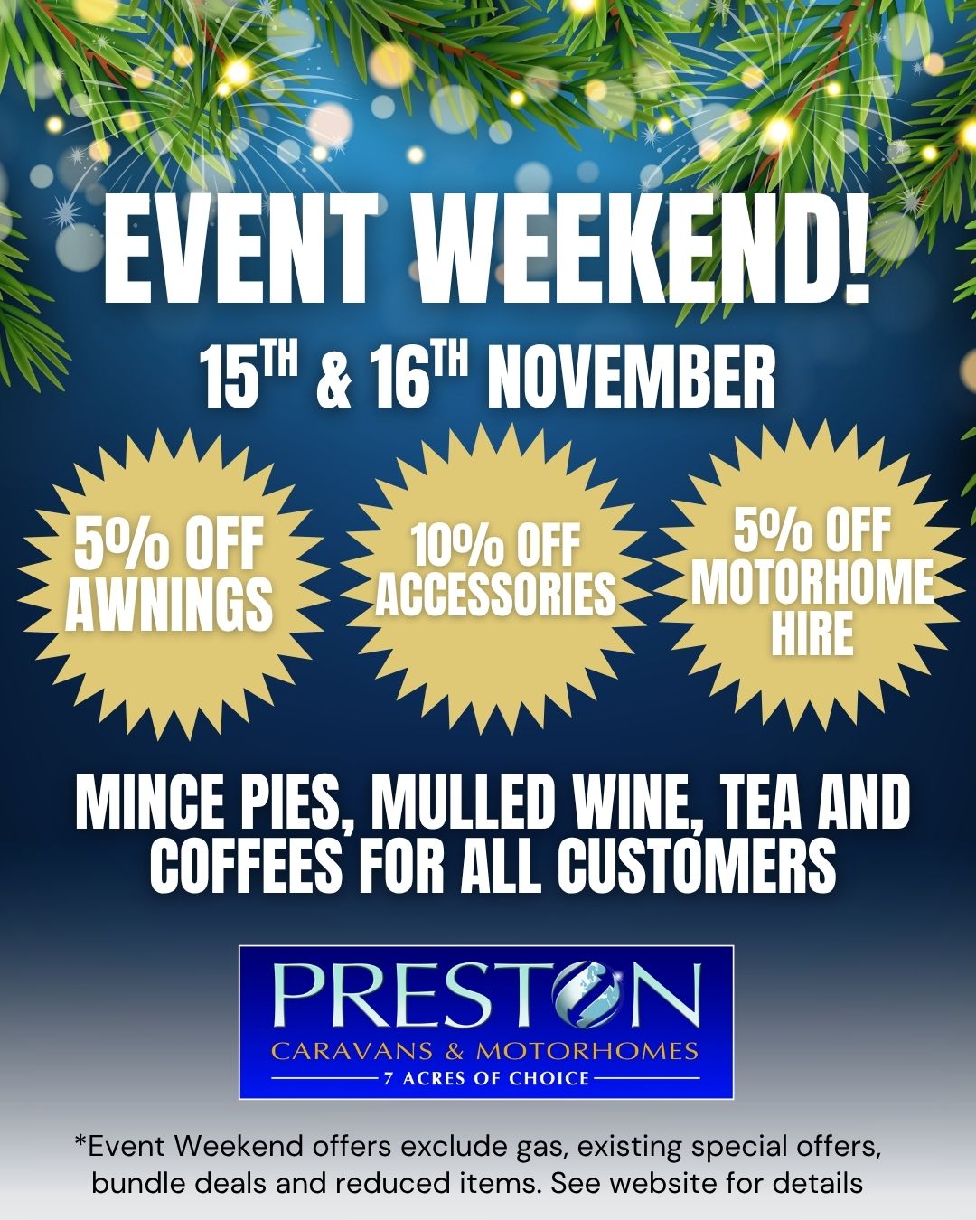 EVENT WEEKEND COMING UP! 15th 16th November Mulled wine, mince pies and tons of special offers! Awnings: 5% off all