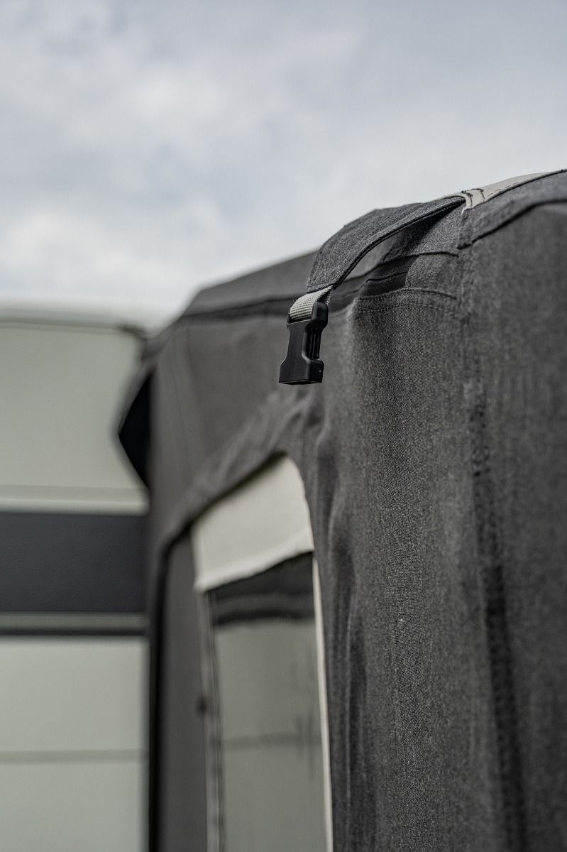 Designed to fit caravans, motorhomes and tall campervans, the Estate has Telta’s adjustable height system for a secure and tailored fit.