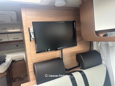 This model offers front dinette seating that makes use of the cab swivel chairs, and TV stand with aerial connectivity.